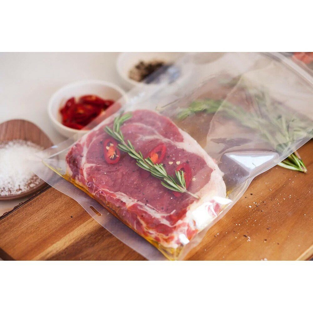 | Минусы: | Если в пакет класть влажные овощи или фрукты, то поднимающаяся вода не дает пакет запаять. Приходится открывать и выливать воду, протирать края пакета изнутри |