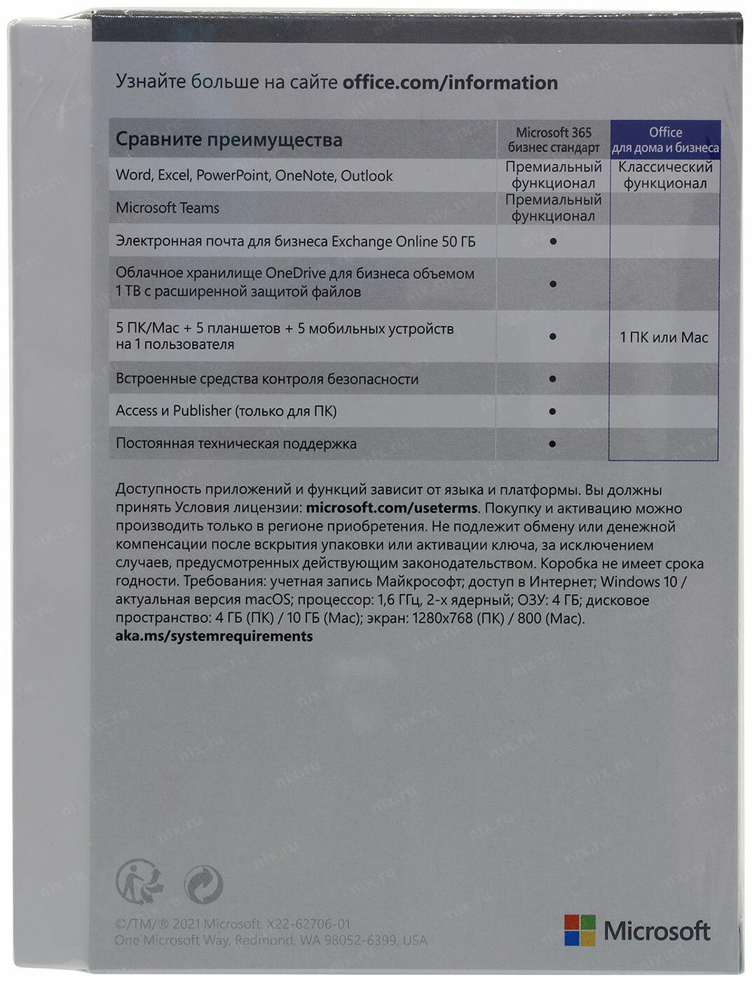 Программное обеспечение MICROSOFT Office Home and Business 2021 Russian Central/Eastern Euro (T5D-03544)