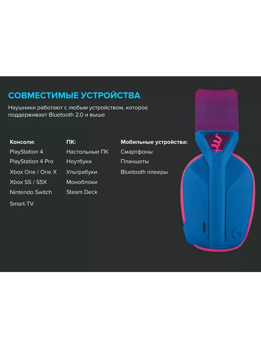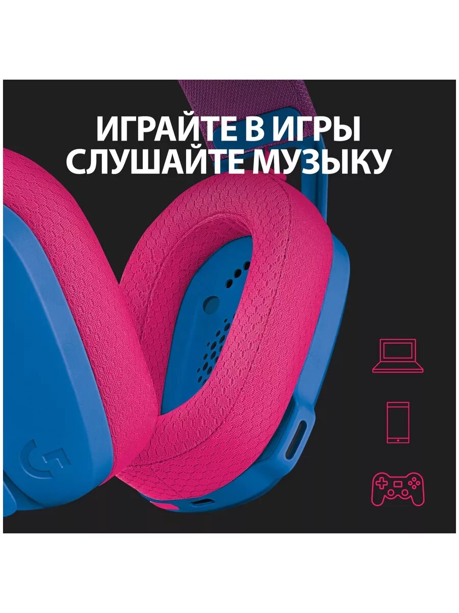 Гарнитура игровая Logitech G435, для ПК и игровых консолей, накладные, радио, синий / розовый [98