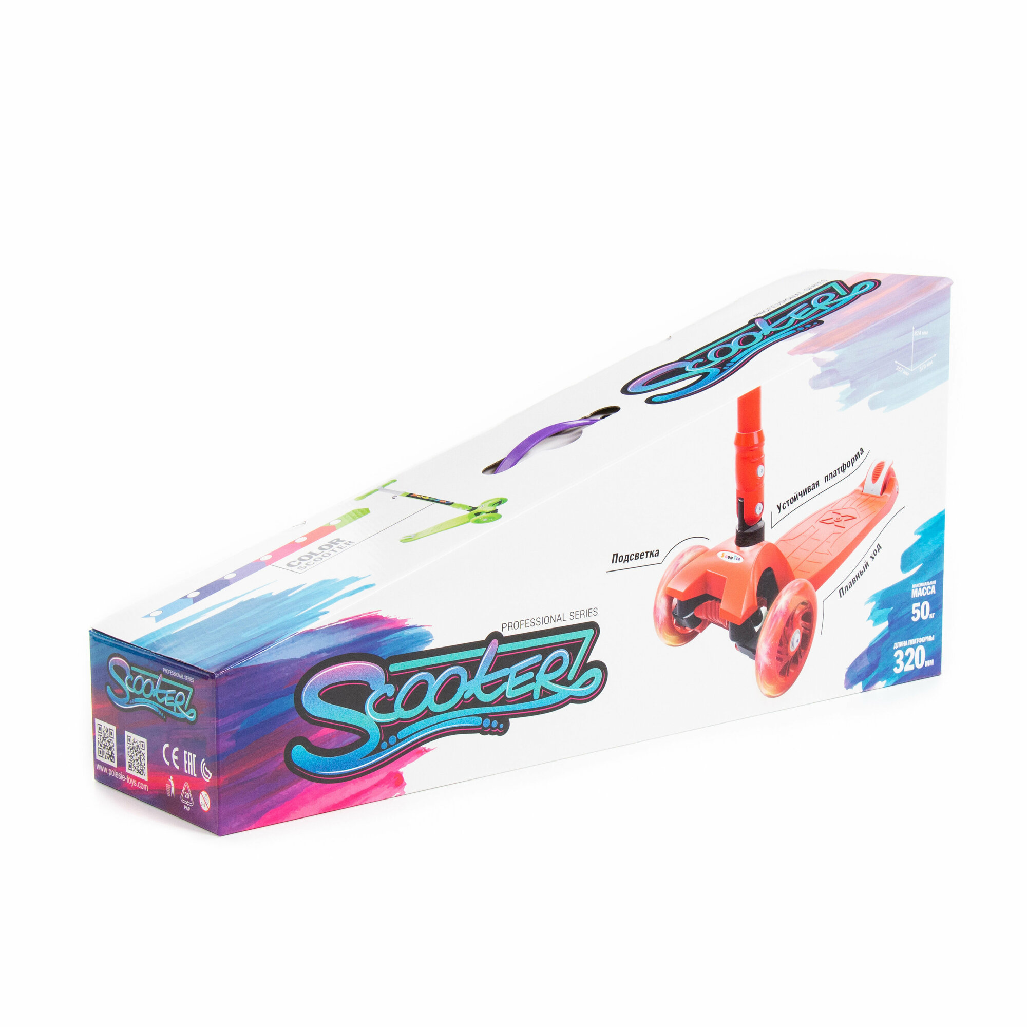Купить Детский самокат (со складной ручкой) (фиолетовый) (в коробке)