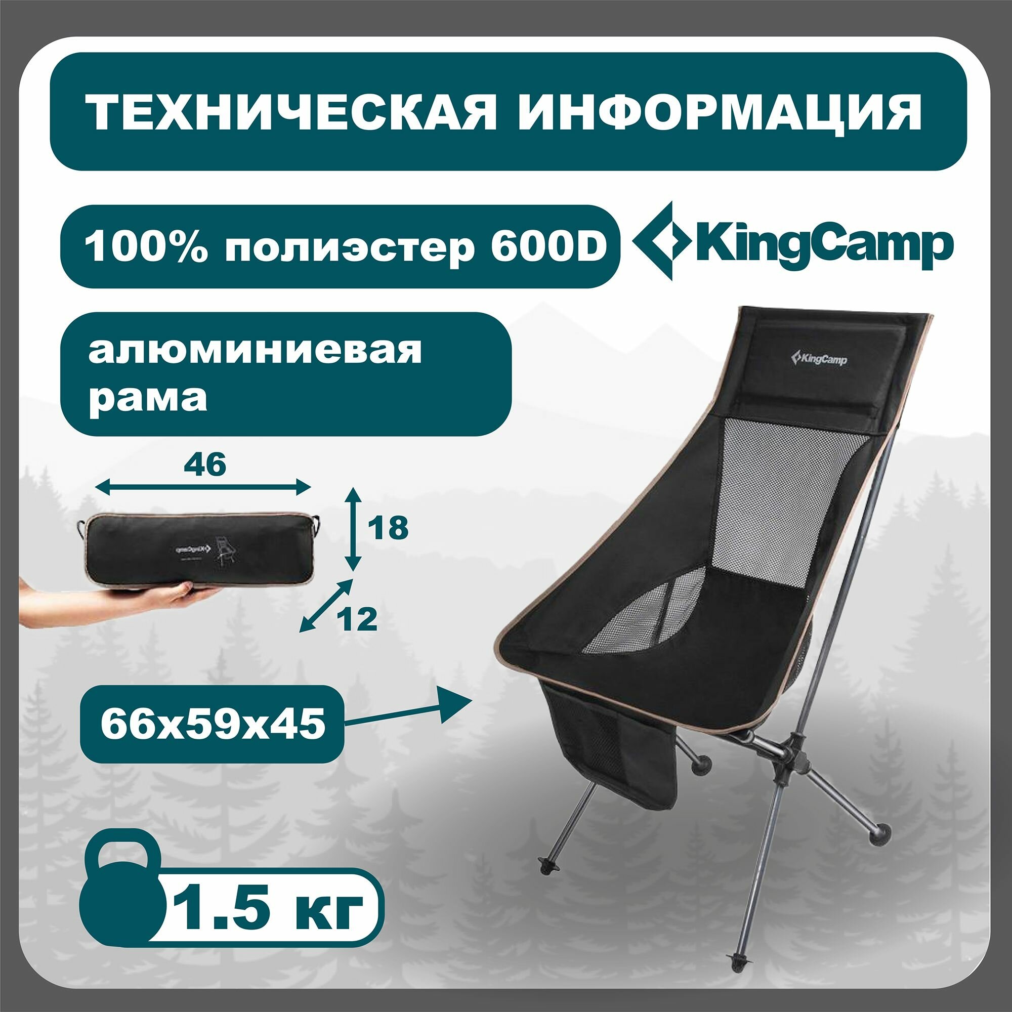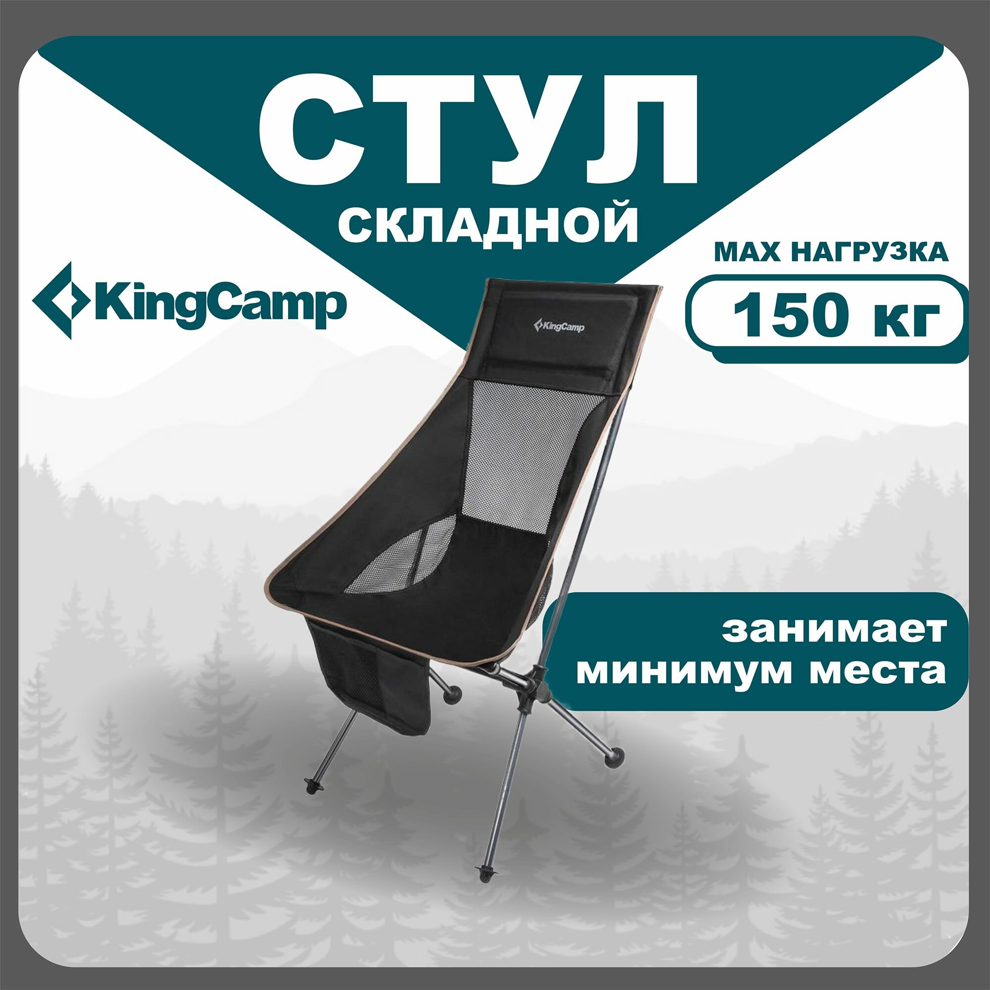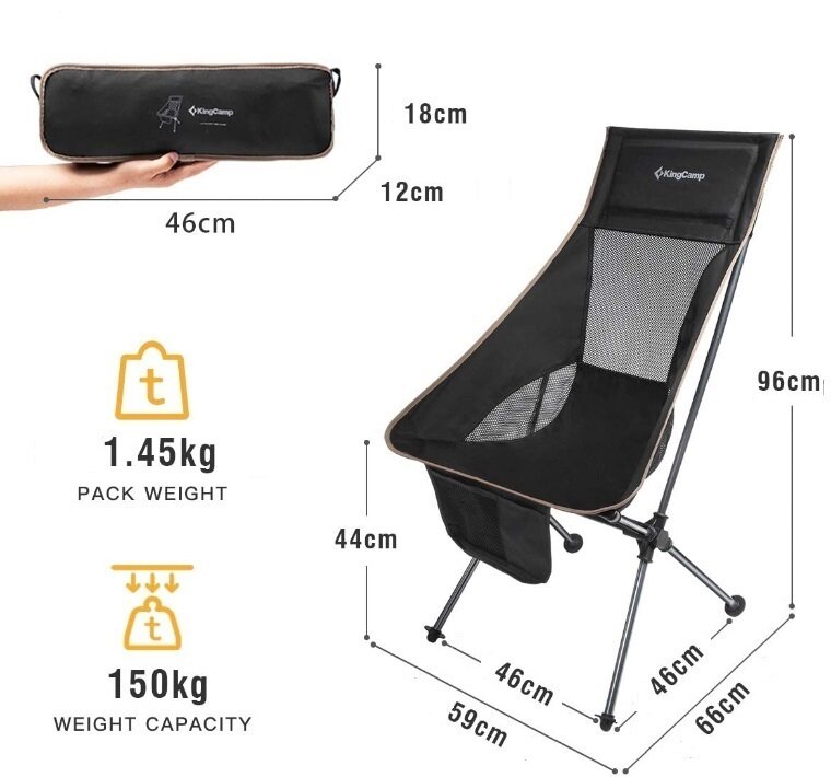 Кресло туристическое раскладное со спинкой KingCamp KC 1908 Tall Sling Chair, черный интересное: