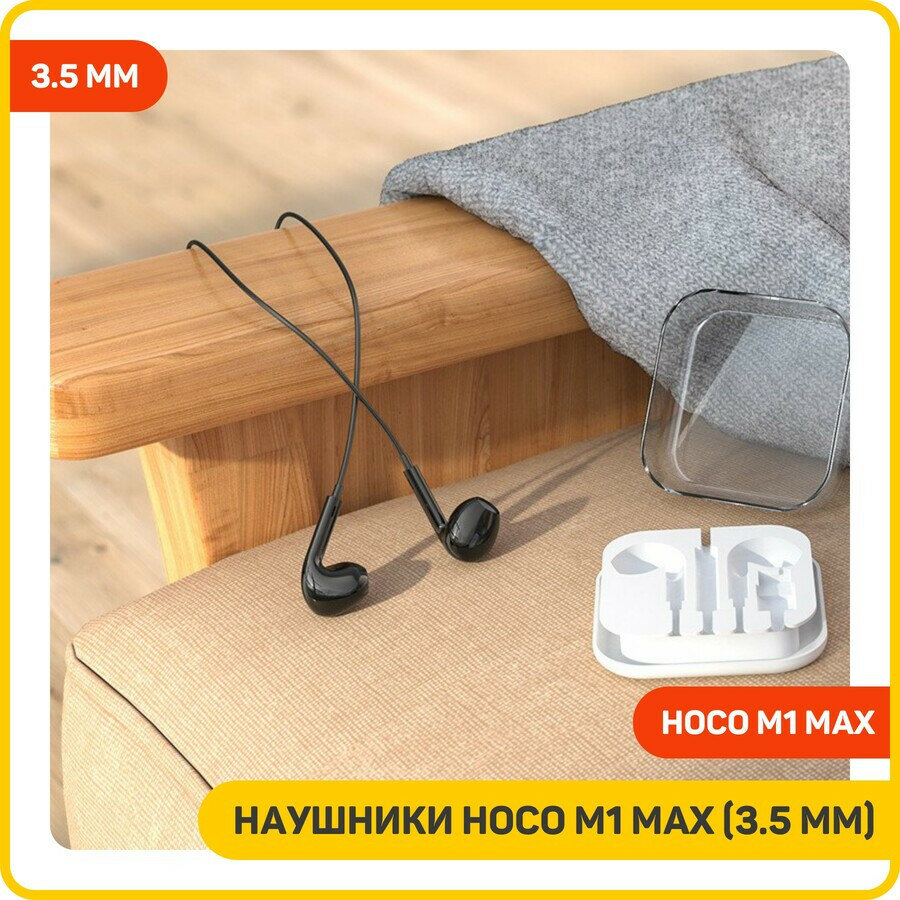 Наушники внутриканальные HOCO M1, Max, Jack 3.5мм, 1.2 м, цвет: чёрный