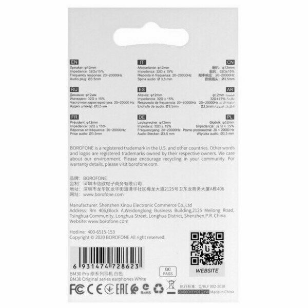 Ниже Вы можете прочитать отзывы на Проводные наушники BOROFONE BM30 Pro, Jack 3.5mm, 1.2 м, белый, ознакомится с подробными характеристиками, посмотреть интересные обзоры и фотографии на Проводные наушники BOROFONE BM30 Pro, Jack 3.5mm, 1.2 м, белый.
