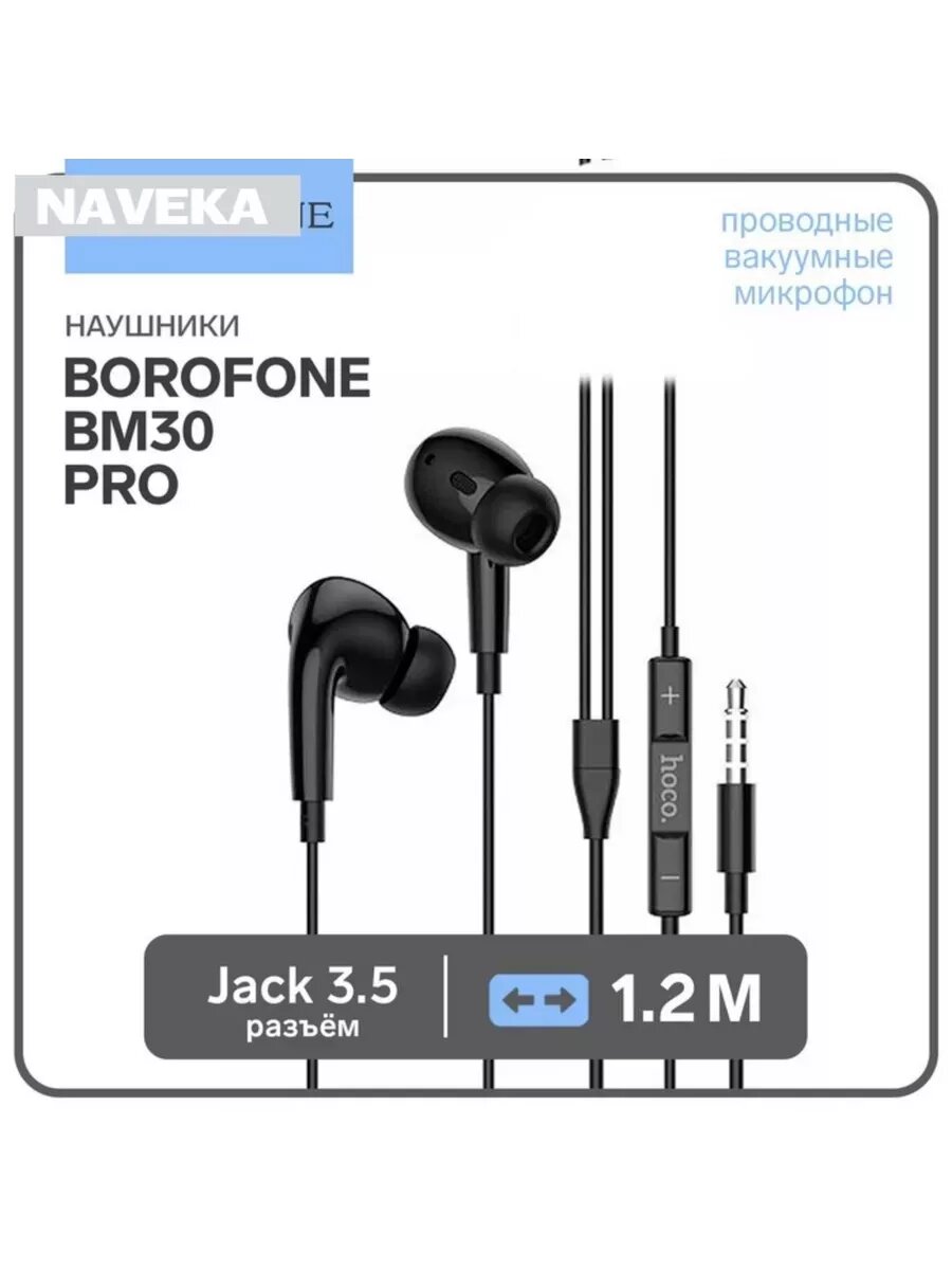 Borofone Наушники Borofone BM30 Pro, вакуумные, микрофон, Jack 3.5 мм, кабель 1.2 м, чёрные