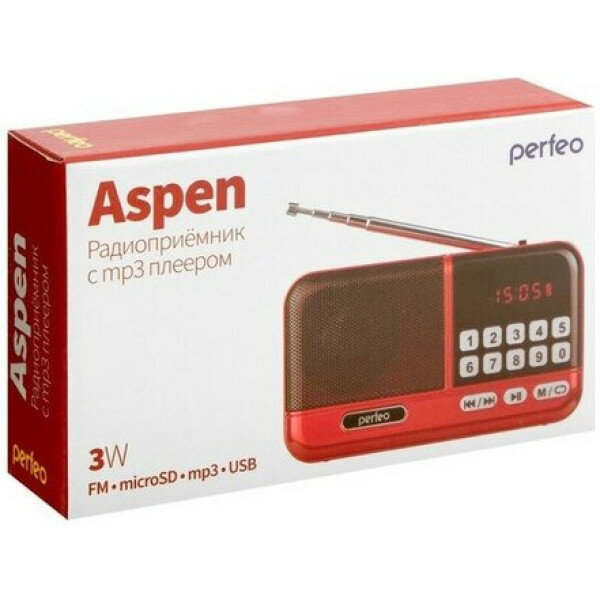 Радиоприемник Perfeo Aspen, usb, microSD, mp3, УКВ, FM, цифровой - красный
