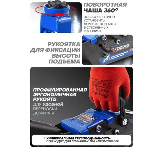 Купить Forsage Домкрат подкатной 2,5т с фиксацией h min 140мм, h max 387мм F-th22501cb .