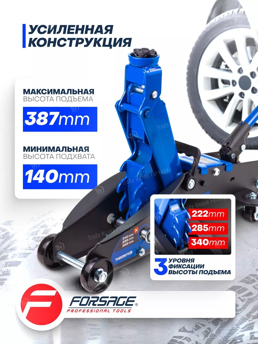 FORSAGE FORSAGE Домкрат подкатной 2.5 т, с фиксацией (h min 140 мм, h max 387 мм) FORSAGE FTH22501CB