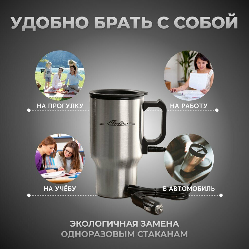AIRLINE ABK-12-10 Термокружка с подогревом, нержавейка/пластик, 450 мл, 12V/24W AIRLINE