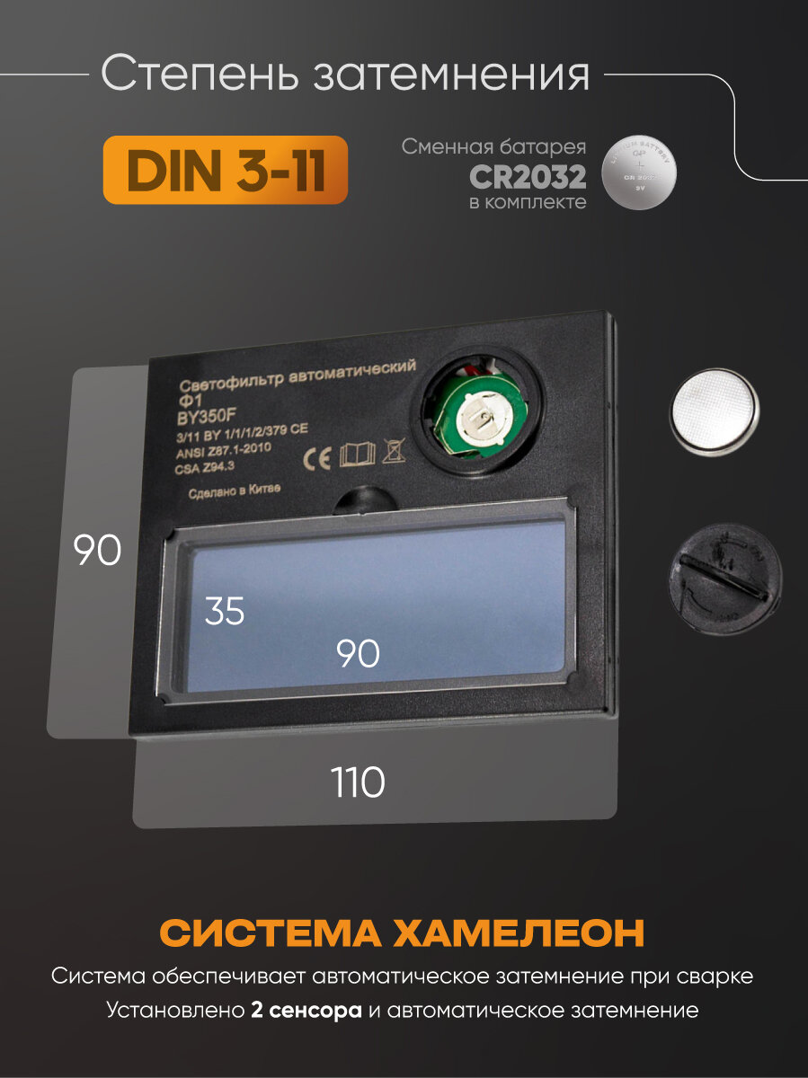 Автоматический светофильтр Хамелеон для сварочной маски BY-350F (Ф1) ARMA