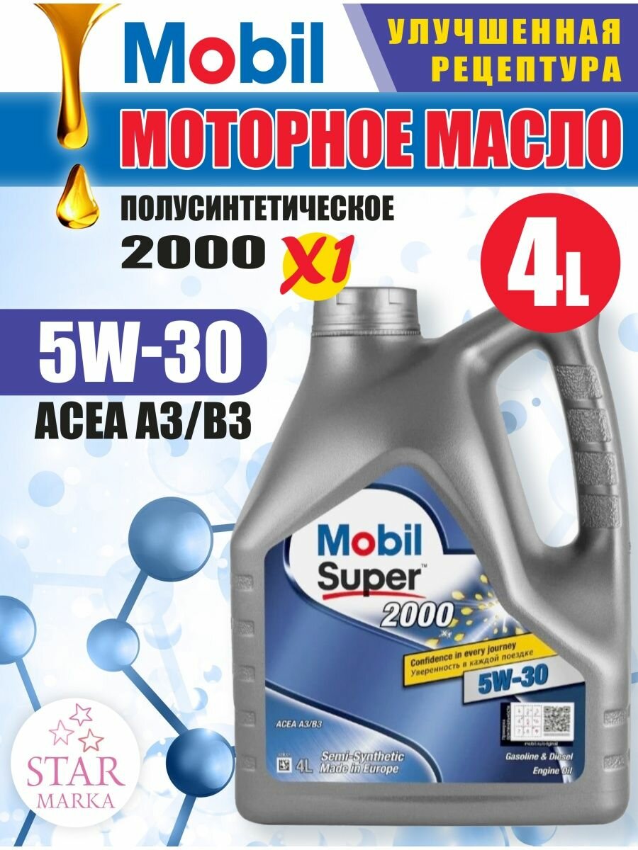 Масло моторное MOBIL Super 2000 X1 5W30 полусинтетическое 4л MOBIL / арт. 155317 - (1 шт)