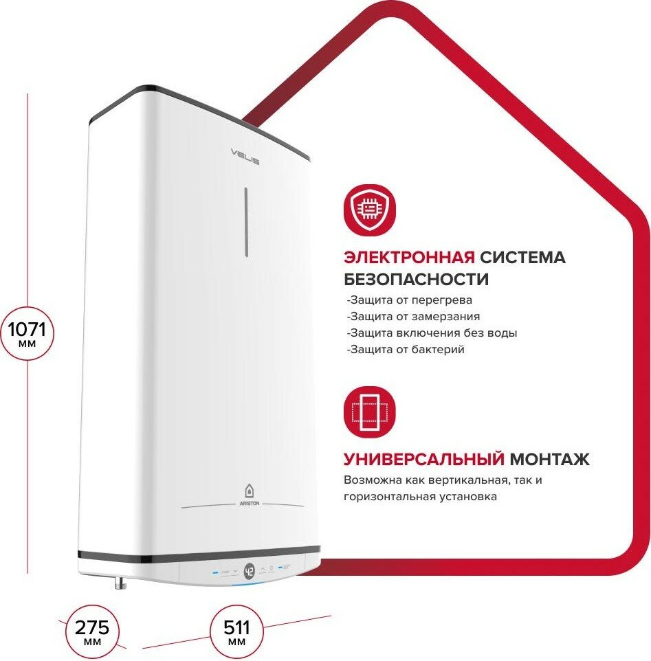 Водонагреватель накопительный Ariston Velis TECH PW ABSE электрический 80 л 2,5 кВт плоский универсальный
