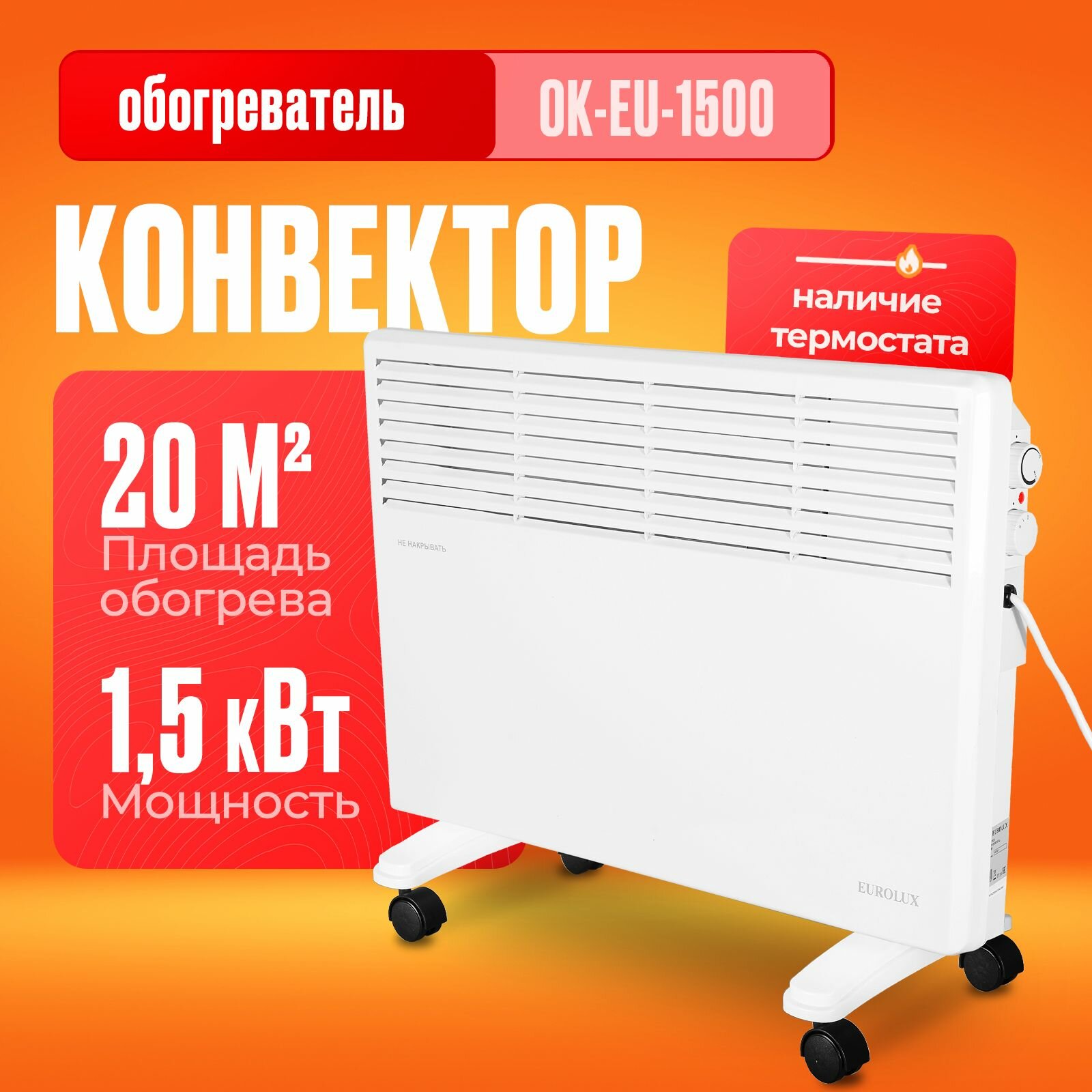 Купить Конвектор, обогреватель электрический Eurolux ОК-EU-1500 (2 режима; 20м2; термостат)