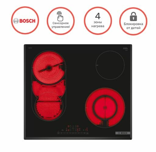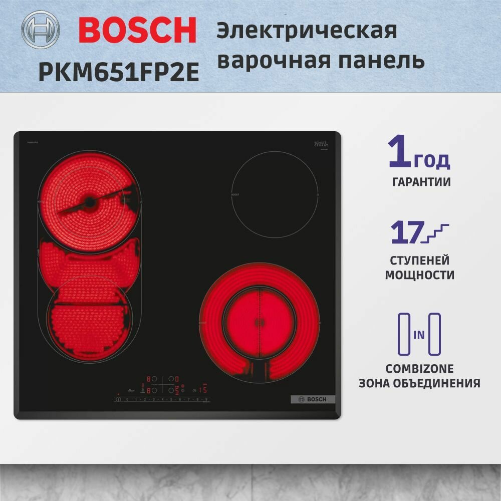 Электрическая варочная панель Bosch PKM651FP2E, электрическая, независимая, черный