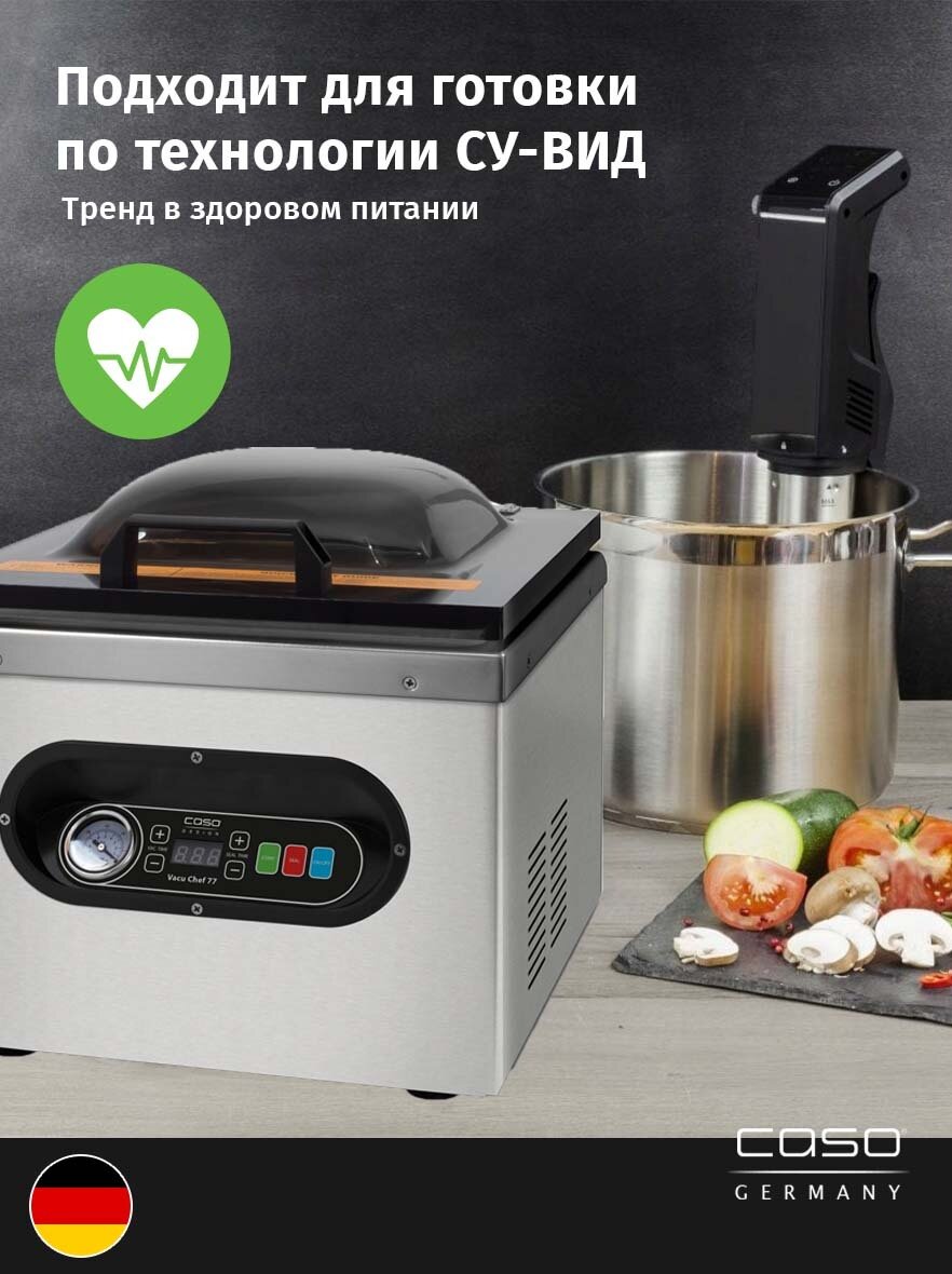 СохранитьВакуумный упаковщик камерный (вакууматор) CASO VacuChef 77 77 л/мин Импульсный режим Адаптер для уплотнения контейнера интересное: