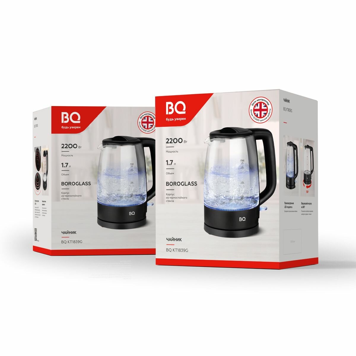 Купить Чайник электрический BQ KT1839G Белый / Стеклянный / 1.7 л 2200 Вт