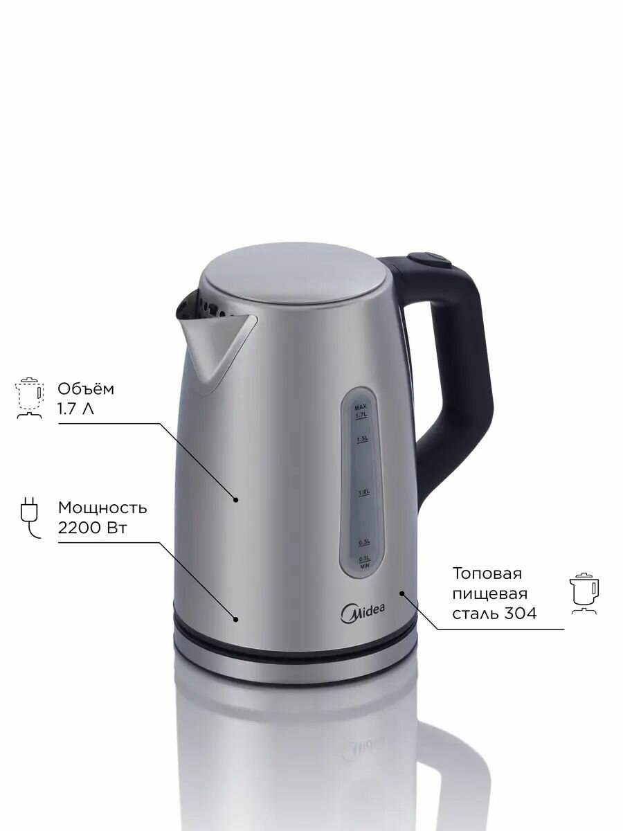 Midea Чайник Midea MK-8063, электрический, серебристо-черный (2200Вт, 1.7л) (ret)