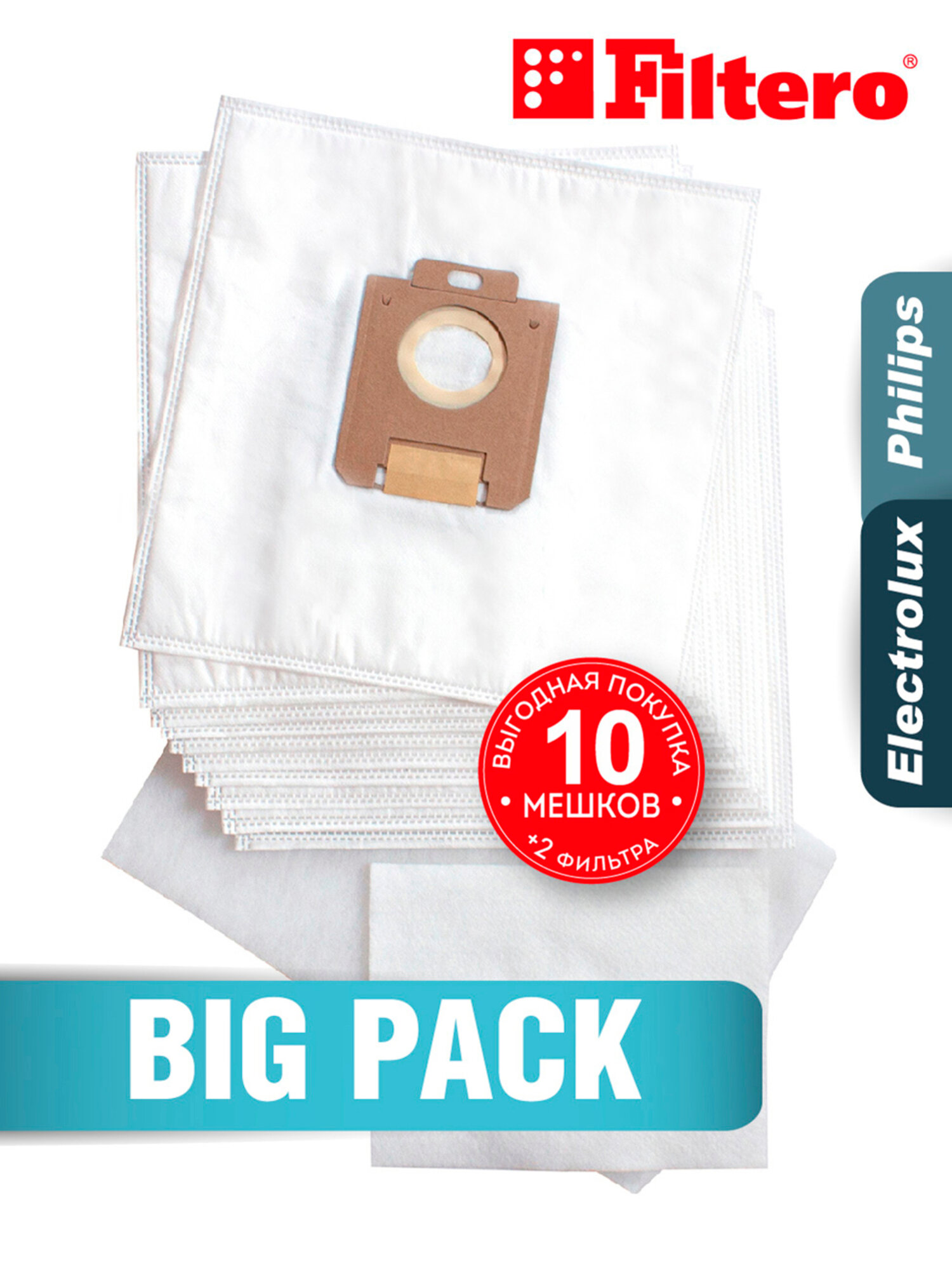 Мешки-пылесборники Filtero FLS 01 (S-bag) Comfort, Big Pack, для пылесосов Electrolux, Philips, синтетический, 10 штук + моторный и микрофильтр