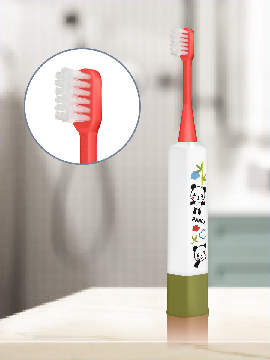 Электрическая зубная щетка Hapica Panda DBK-5GWR детская, мягкая, звуковая, для детей от 3 до 10 лет, Япония. Белый/Красный