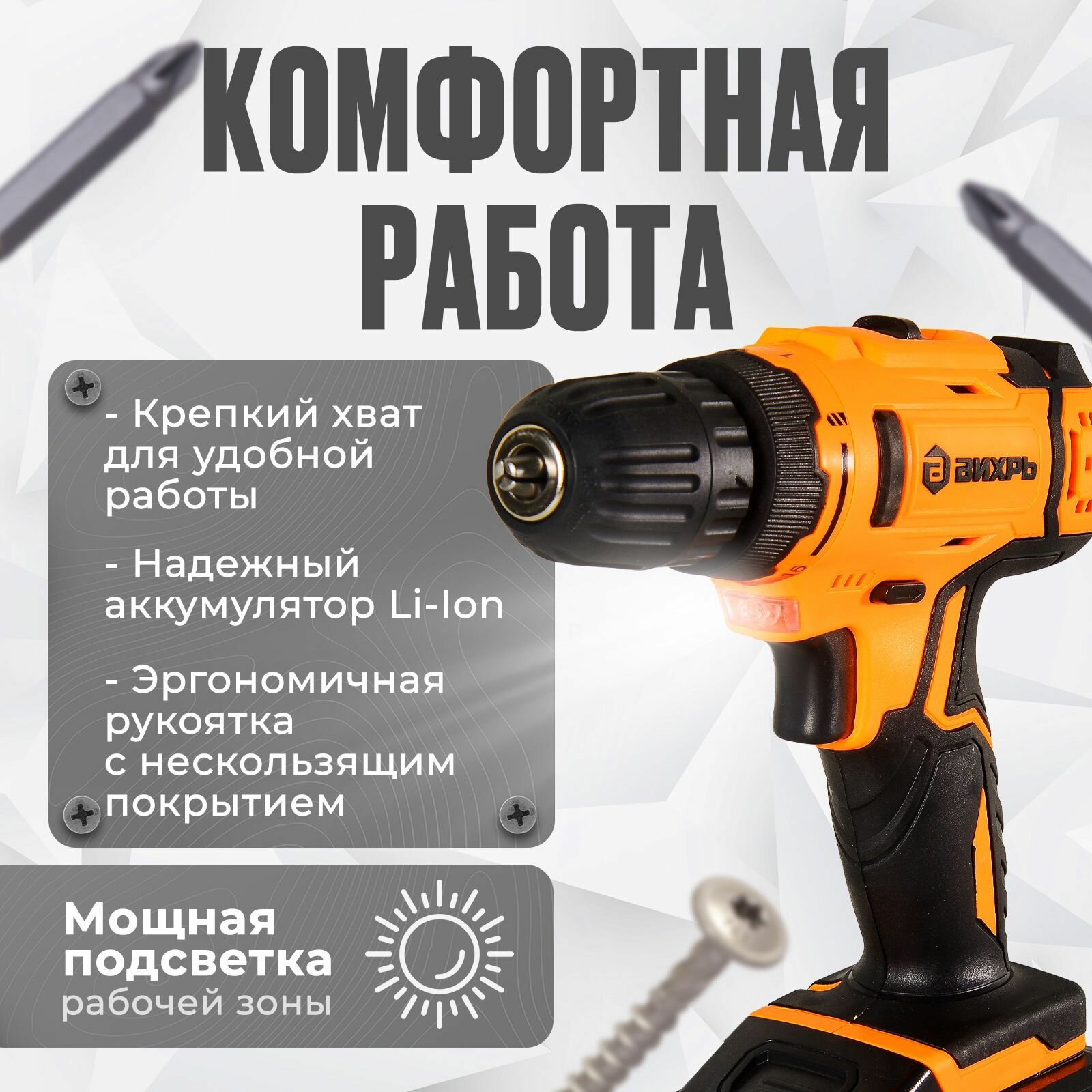 Шуруповерт аккумуляторный Вихрь ДА-12Л-2КН