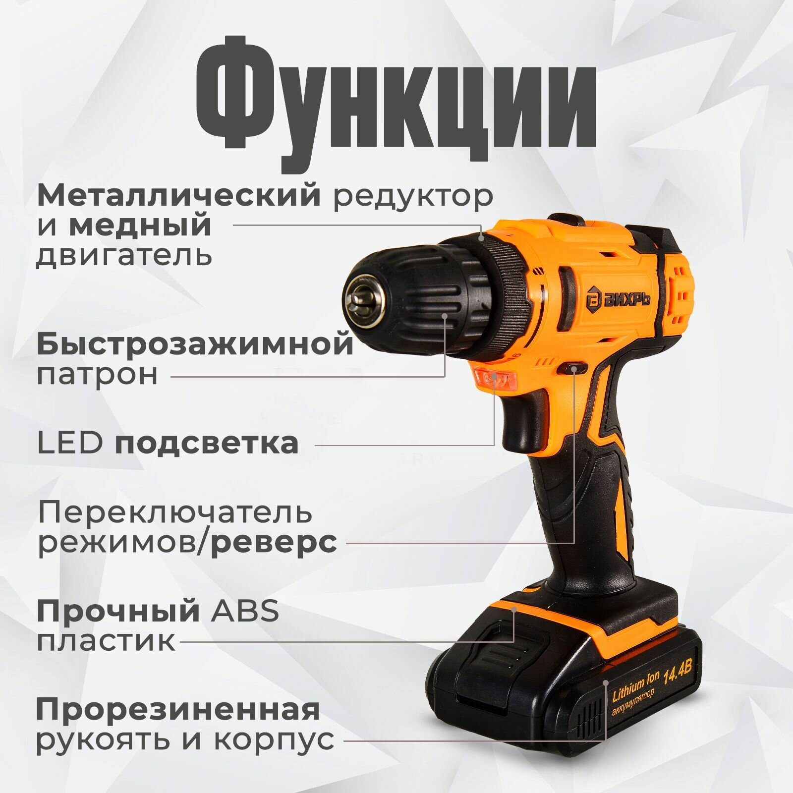 Аккумуляторная дрель-шуруповерт Вихрь ДА-14,4Л-2 72/14/15 Вихрь