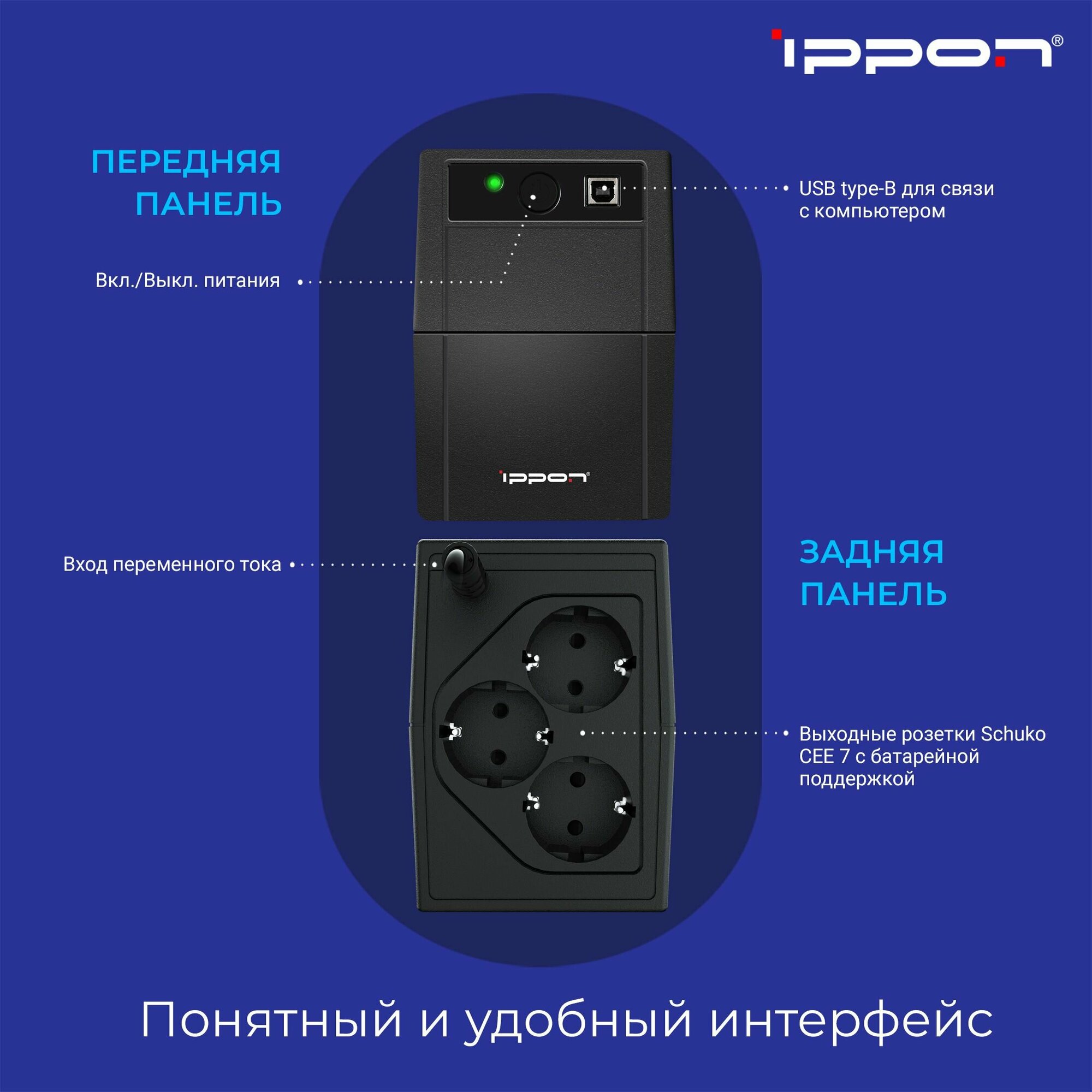 Ippon Источник бесперебойного питания Ippon Back Basic 650S Euro 650VA Черный