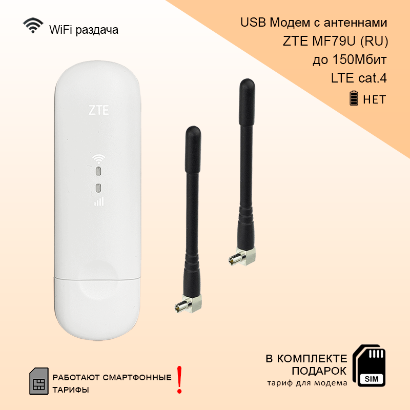 Беспроводной 3G 4G LTE Модем ZTE MF79U I антенны 3dBi I WiFi 2.4ГГц I 150Мбит интересное: