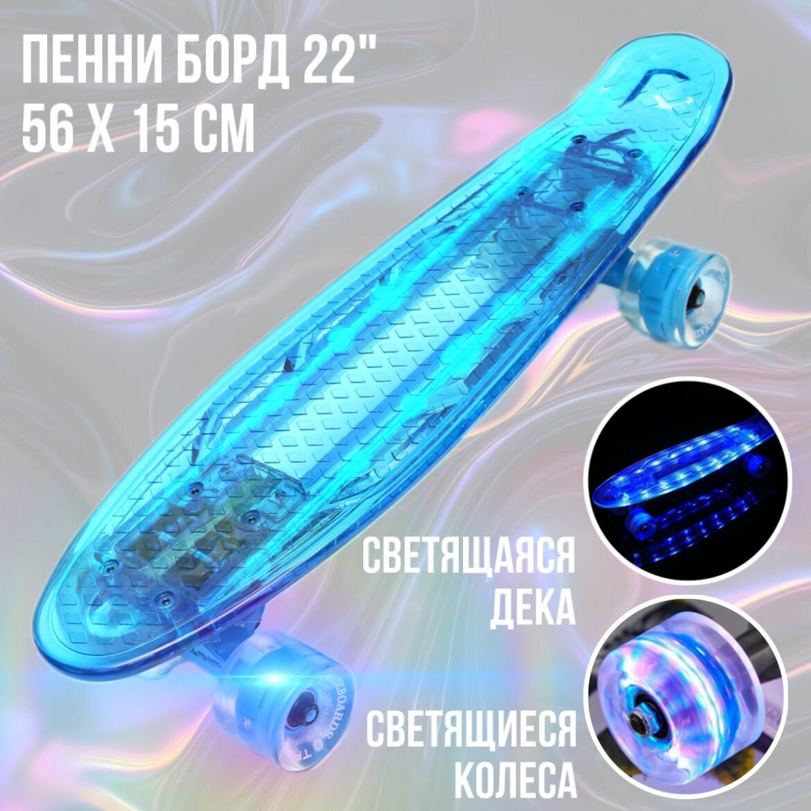 Скейтборд пластиковый (пенни борд) со светящимися колесами и декой для детей и взрослых Triumf Active Light Blue (голубой)