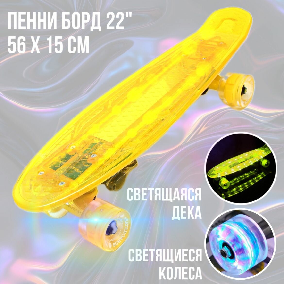 Купить Скейтборд пластиковый (пенни борд) со светящимися колесами и декой для детей и взрослых Triumf Active Yellow (желтый) 22 дюйма