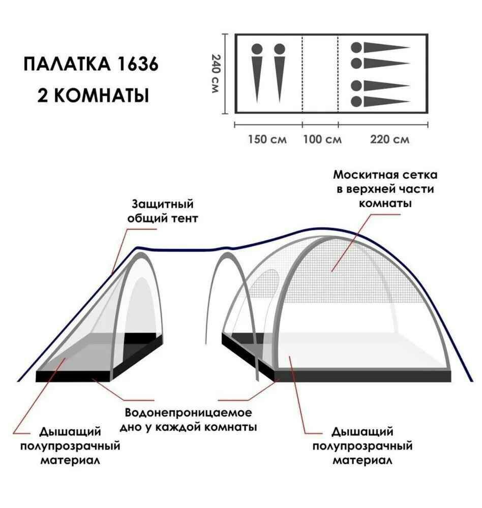 Ниже Вы можете прочитать отзывы на Палатка кемпинговая 1636, ознакомится с подробными характеристиками, посмотреть интересные обзоры и фотографии на Палатка кемпинговая 1636.