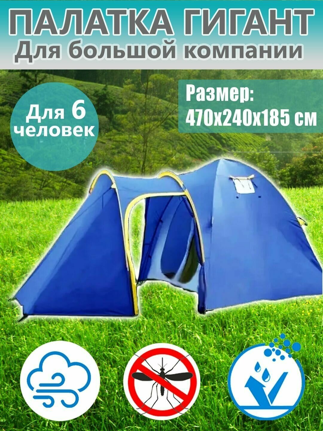 Шестиместная палатка шатер с тамбуром XFY-1636, размер Д470*Ш240*В185, туристическая палатка шатер голубая