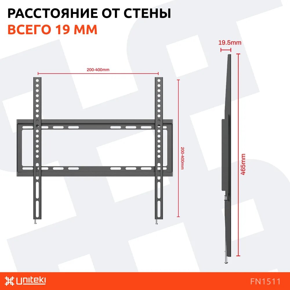 Кронштейн для телевизора на стену фиксированный с диагональю 32"-55" UniTeki FN1511,черный