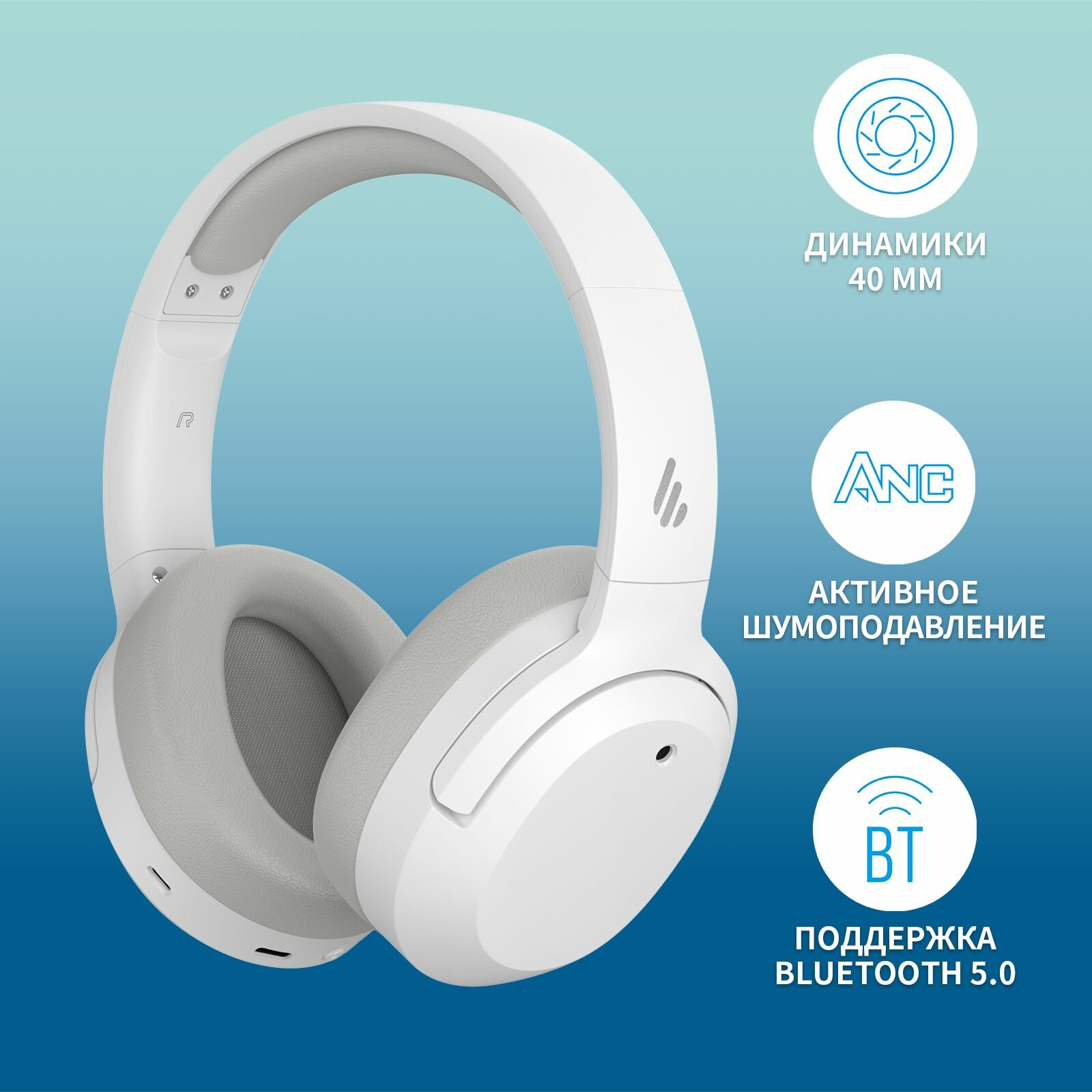 Наушники Edifier W820NB, Bluetooth, накладные, белый