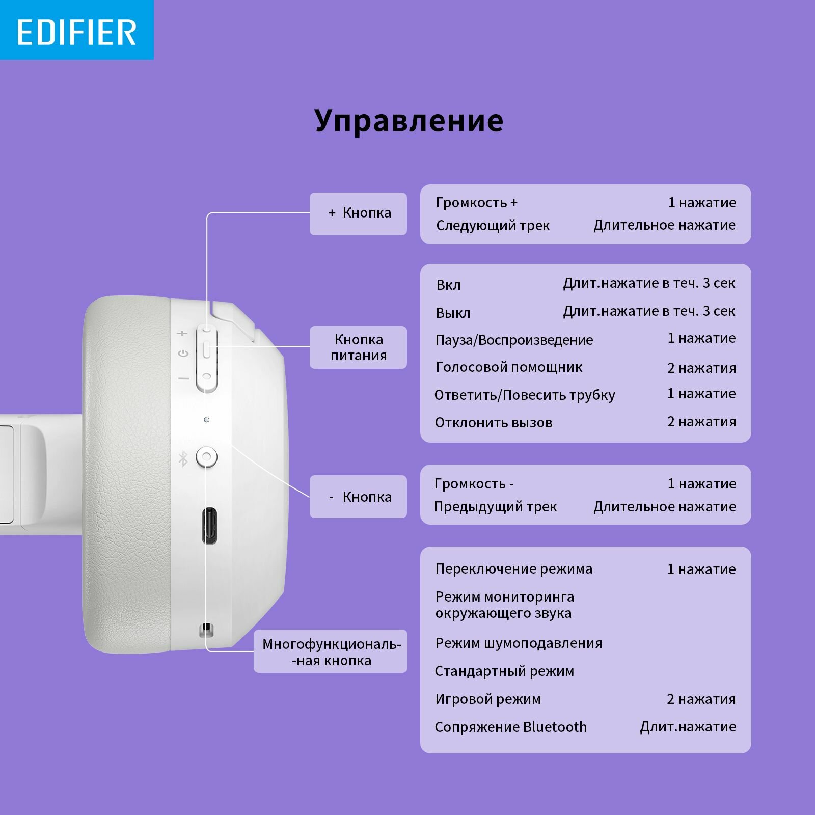Ниже Вы можете прочитать отзывы на Беспроводные наушники Edifier W820NB (белый), ознакомится с подробными характеристиками, посмотреть интересные обзоры и фотографии на Беспроводные наушники Edifier W820NB (белый).