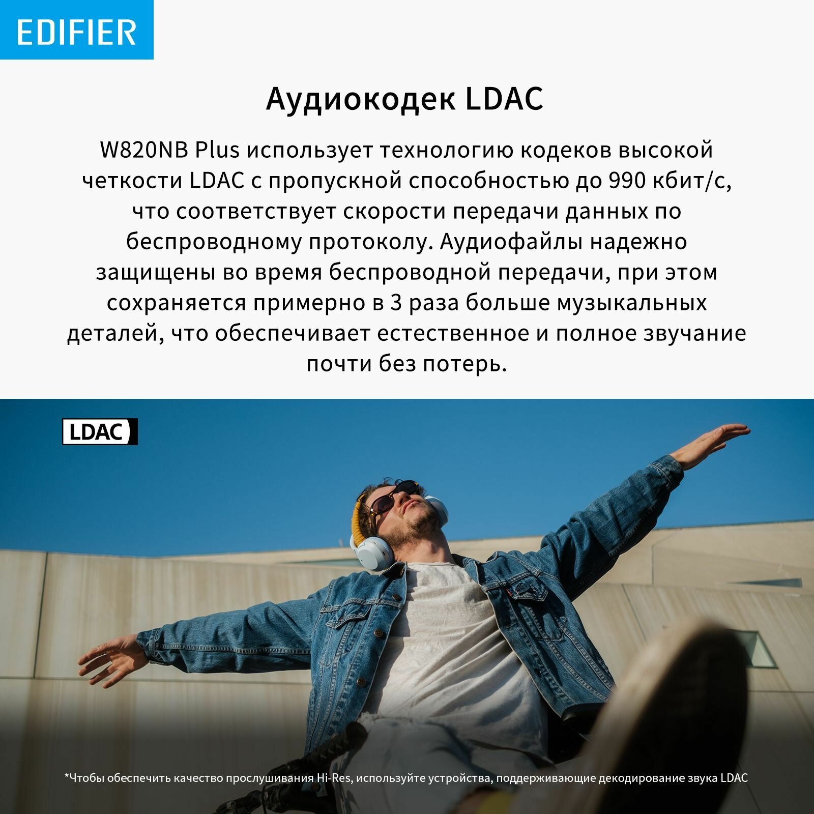 Наушники Edifier W800BT Plus, 3.5 мм/Bluetooth, накладные, белый