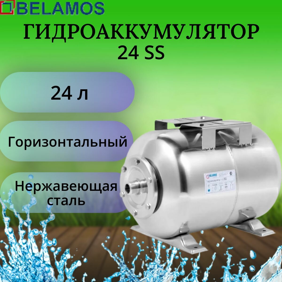 Гидроаккумулятор для насоса, 24 л, горизонтальный, Belamos, 24SS