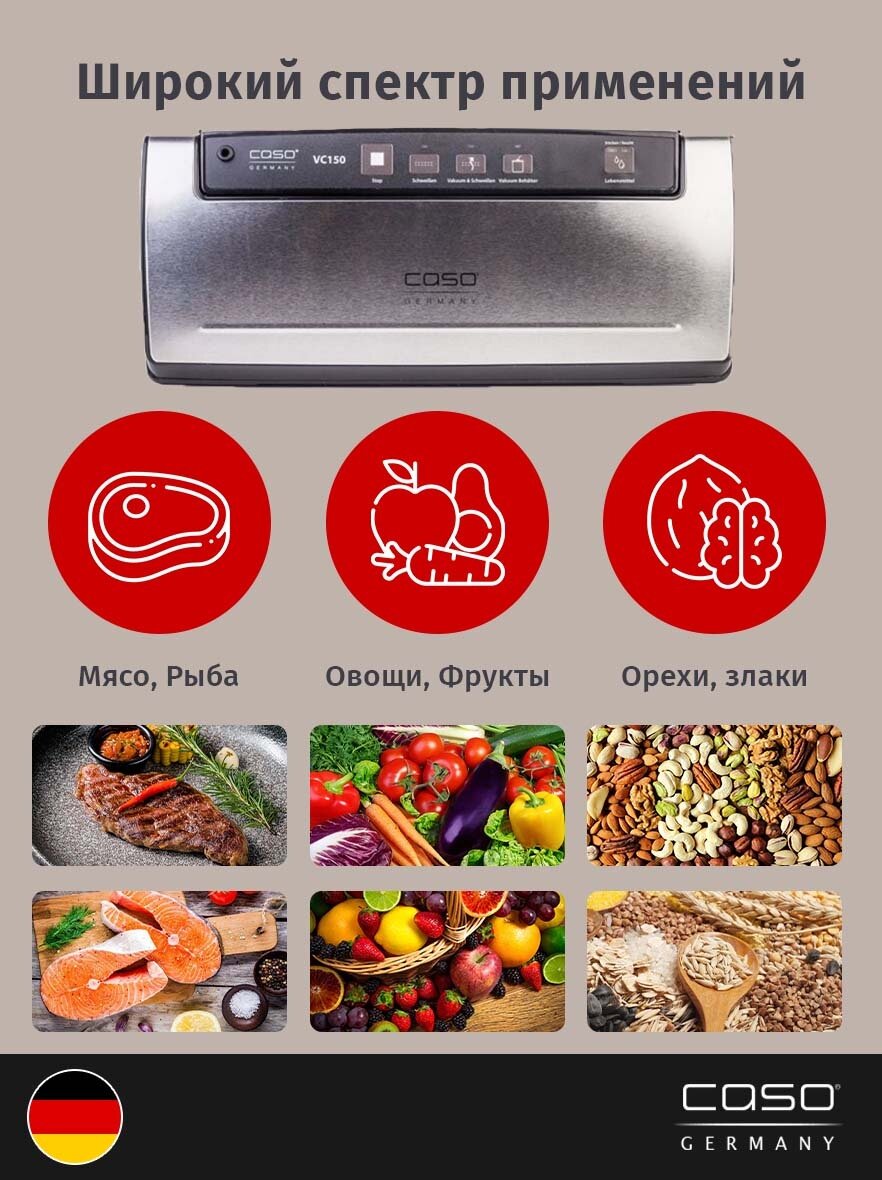 Вакуумный упаковщик Caso VC 150 интересное:
