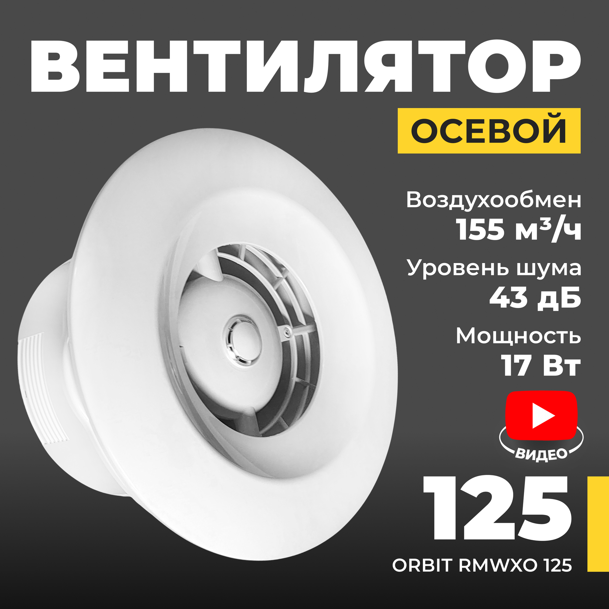 Потолочный вытяжной вентилятор Awenta ORBIT RM WXO125 155м3/ч 17Вт интересное: