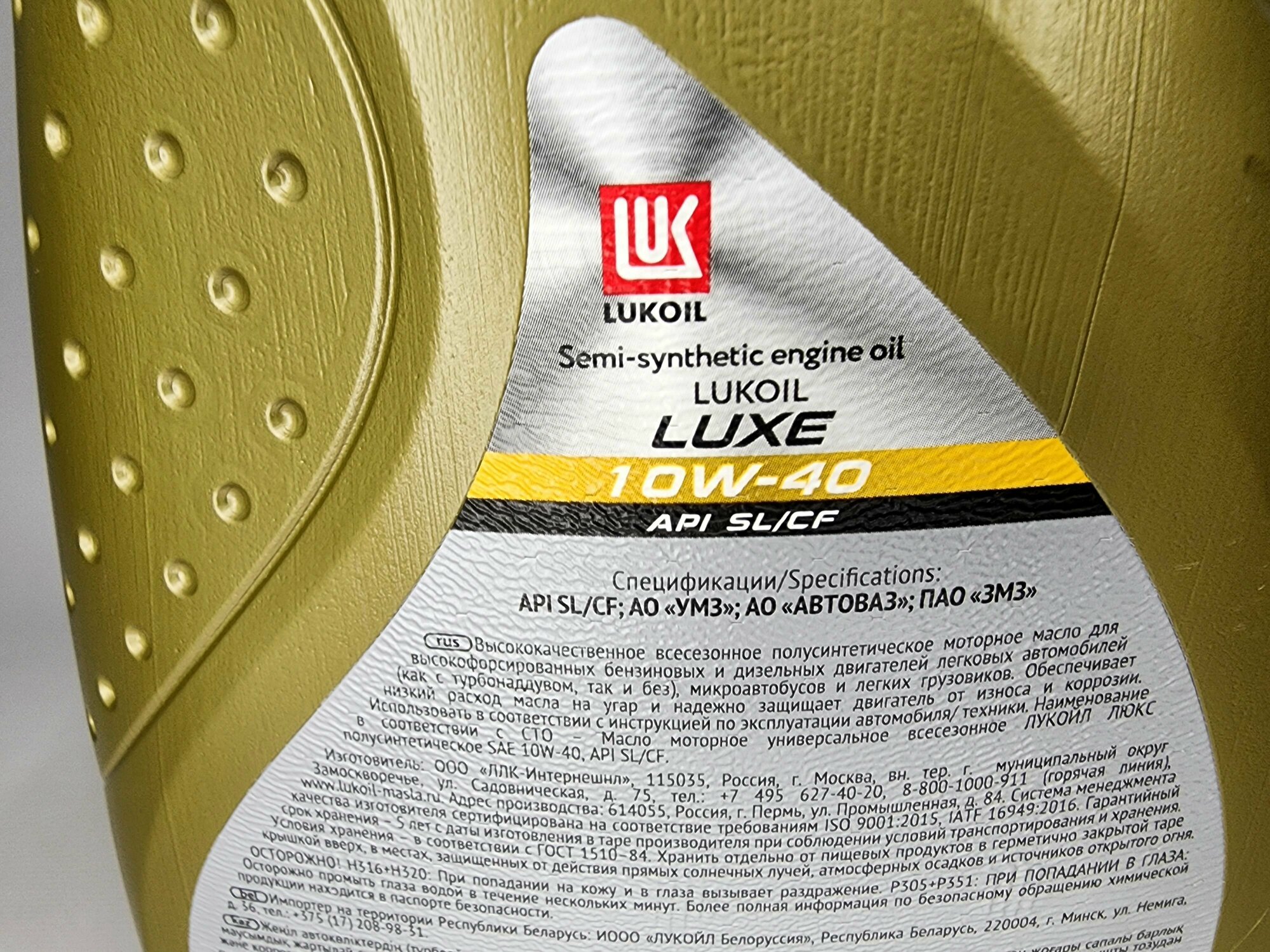 Лукойл люкс полусинтетическое sl/cf 10w40 4 л (19188)