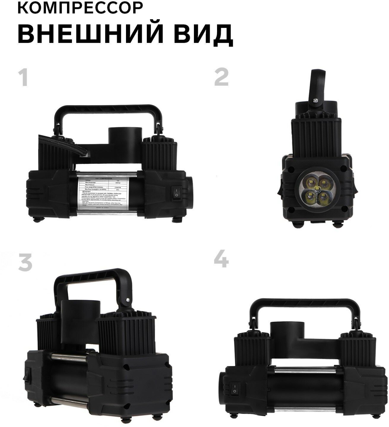 Компрессор автомобильный двухпоршневой, 12В, фонарь, 40 л/мин, сумка, черный 5091479 интересное: