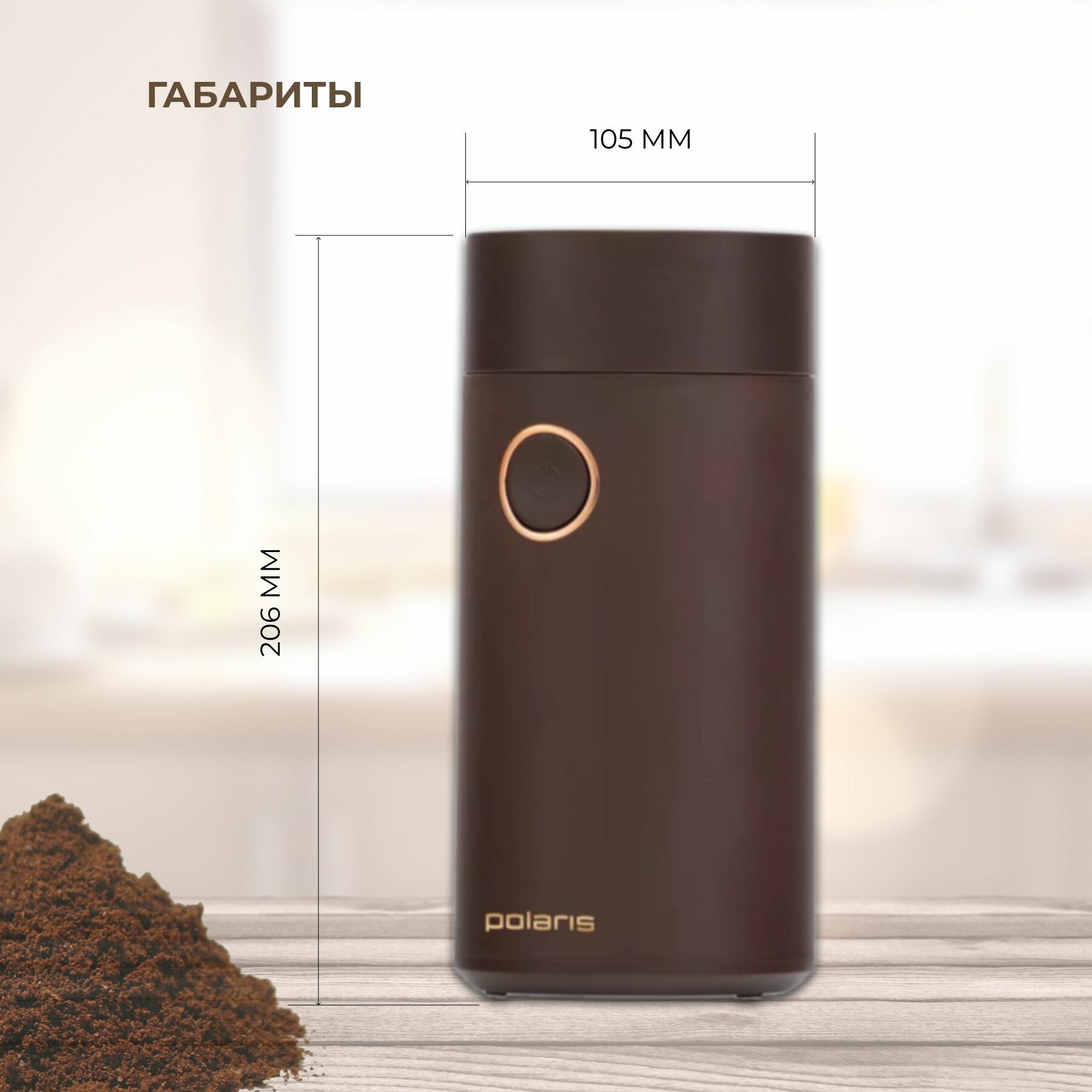 Купить Кофемолка электрическая Polaris PCG 2014 с импульсным режимом работы, коричневый