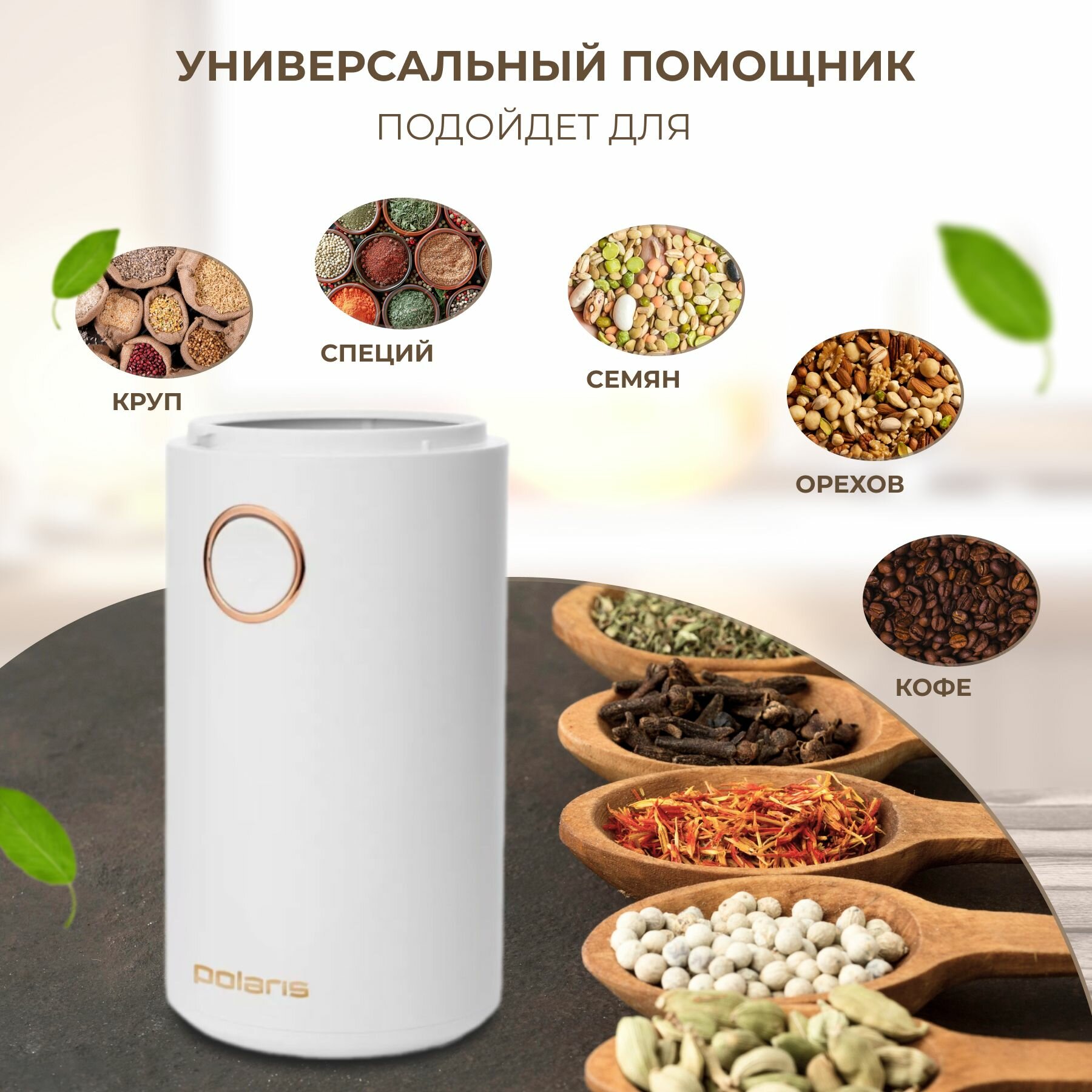 Кофемолка электрическая Polaris PCG 2014 с импульсным режимом работы, белый
