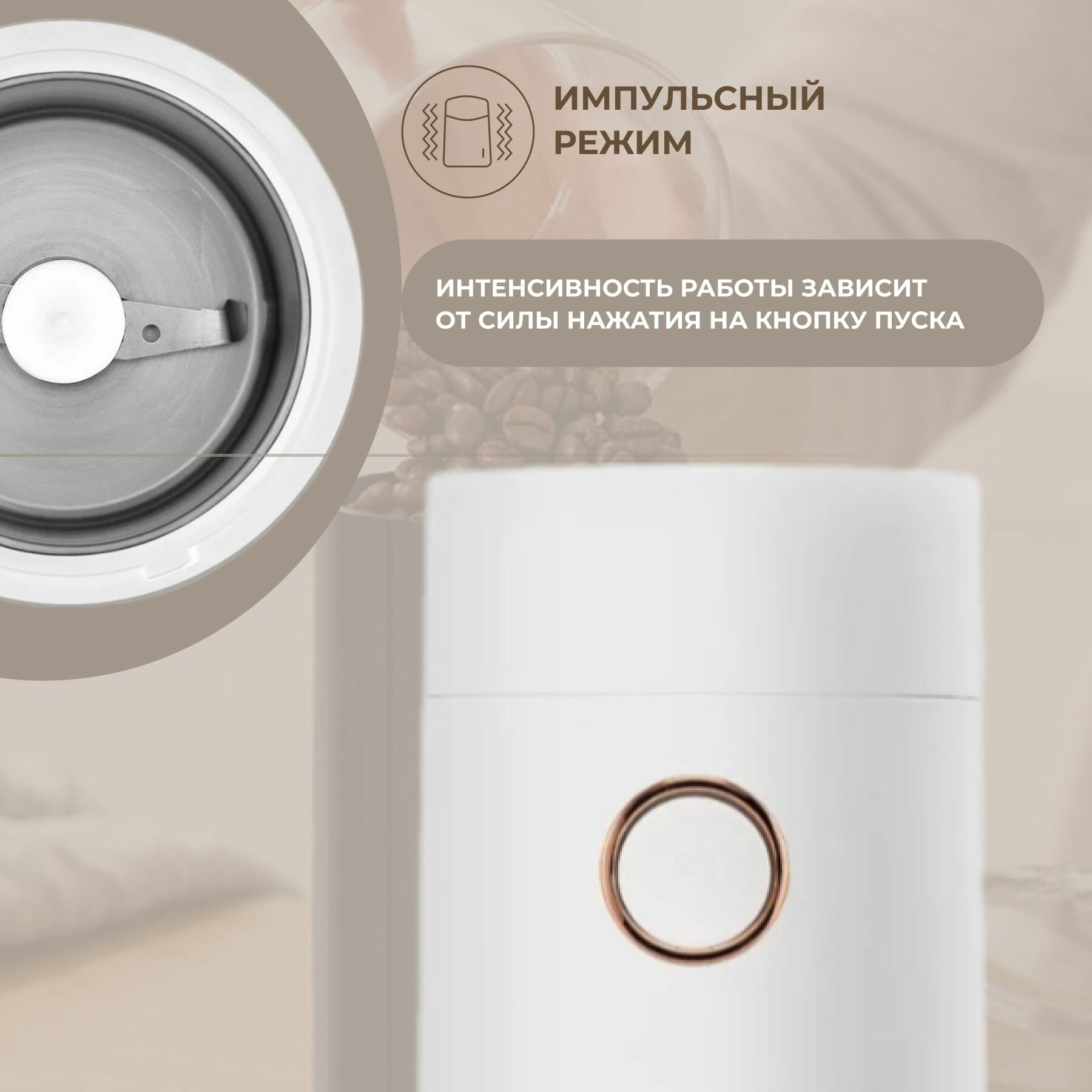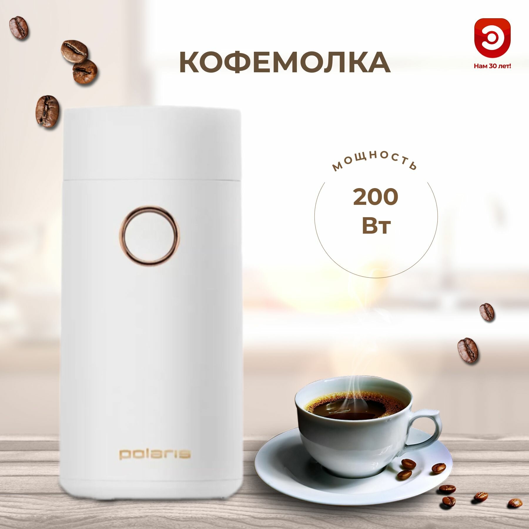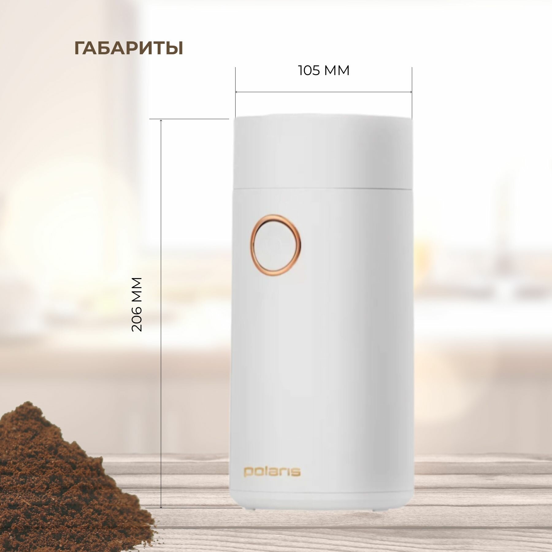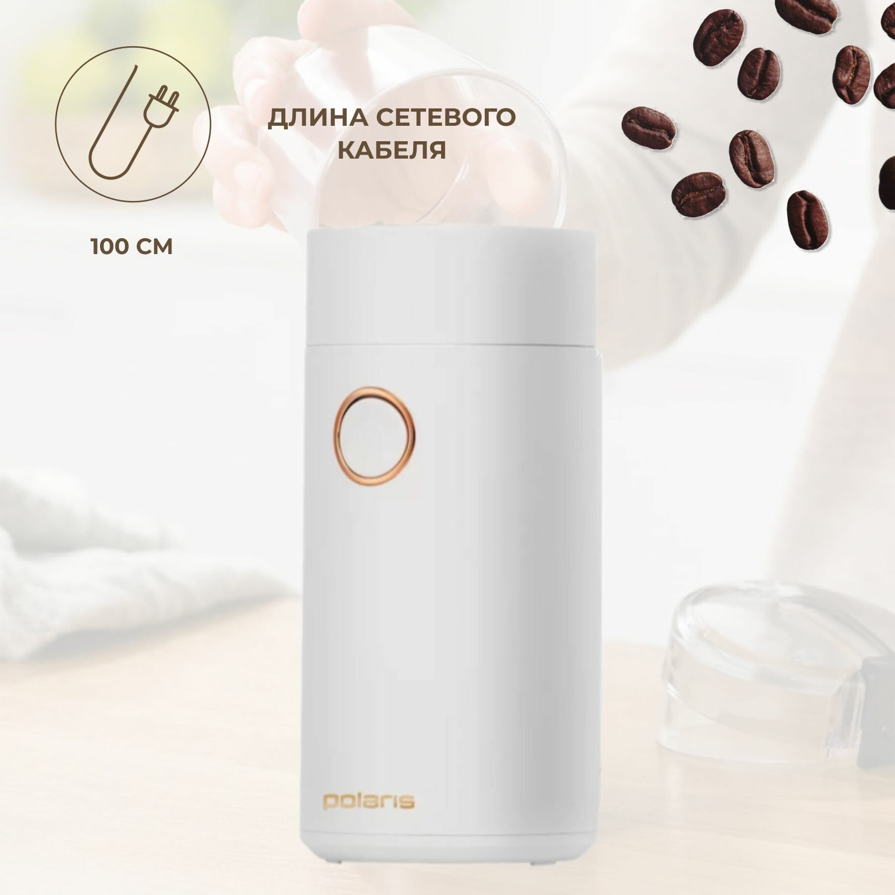 Кофемолка Polaris PCG 2014, электрическая, ножевая, 200 Вт, 50 г, белая