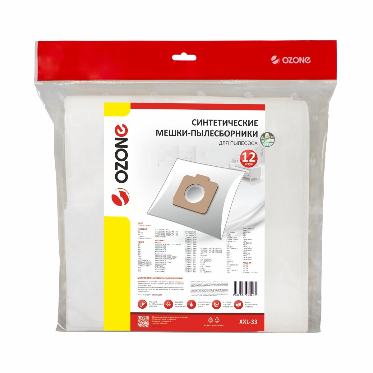 Мешки-пылесборники Ozone синтетические 12 шт для ELITE, FIRSTLINE, KRUPS и др.