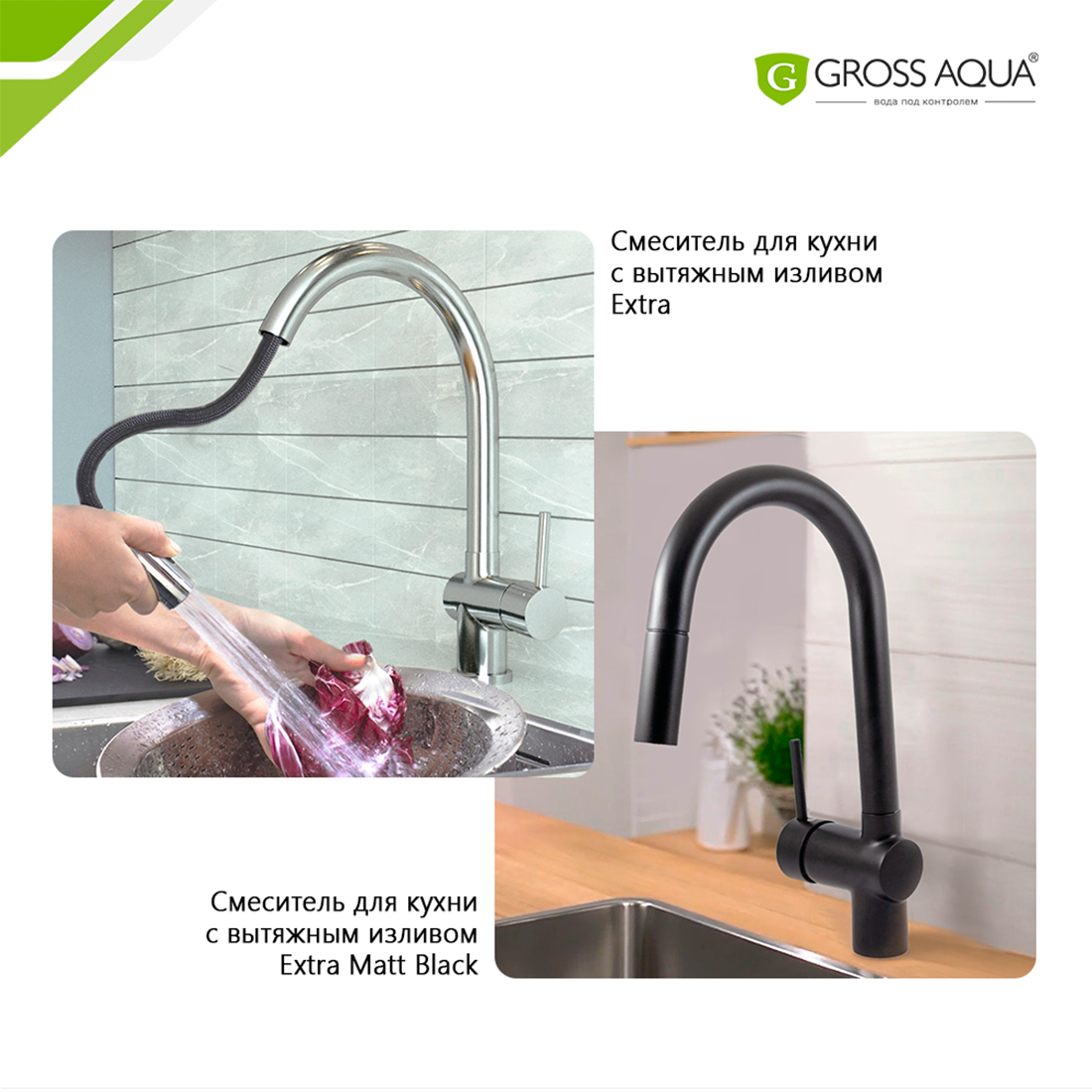 Смеситель Gross Aqua для кухни с вытяжным изливом Extra