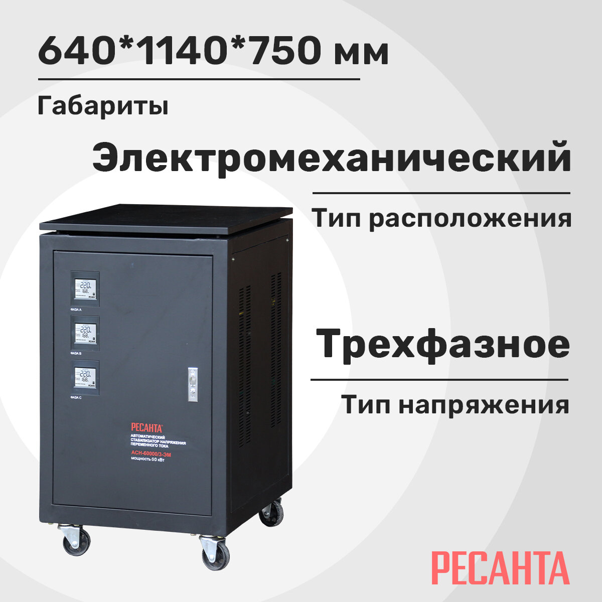 Стабилизатор напряжения трехфазный РЕСАНТА ACH-60000/3-ЭМ с мультиметром YX360TRN черный 60000 Вт 540 мм 650 мм 1090 мм 205 кг
