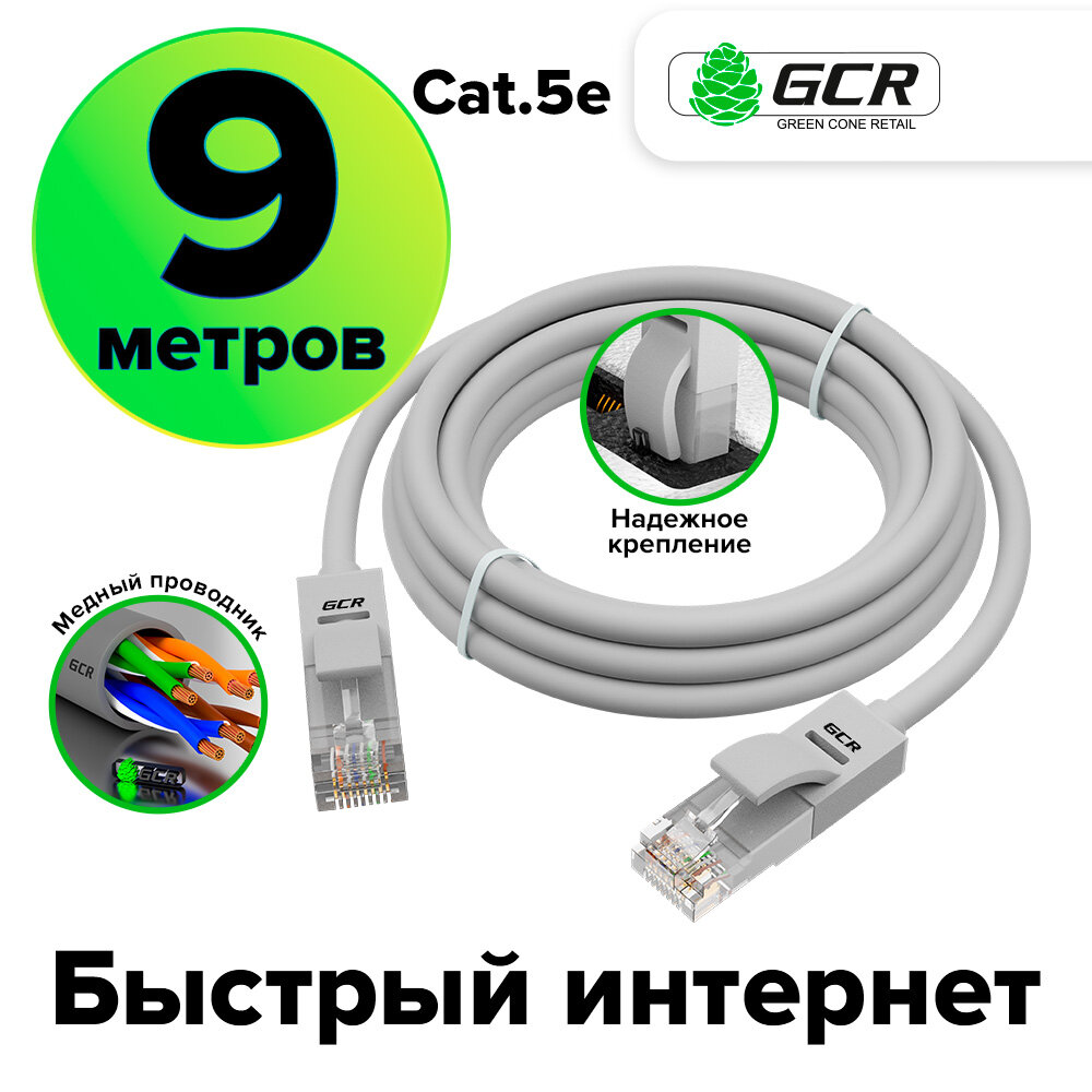 Купить Патч-корд UTP cat.5e 1 Гбит/с RJ45 LAN CCA компьютерный кабель для интернета (GCR-LNC500) серый 9.0м