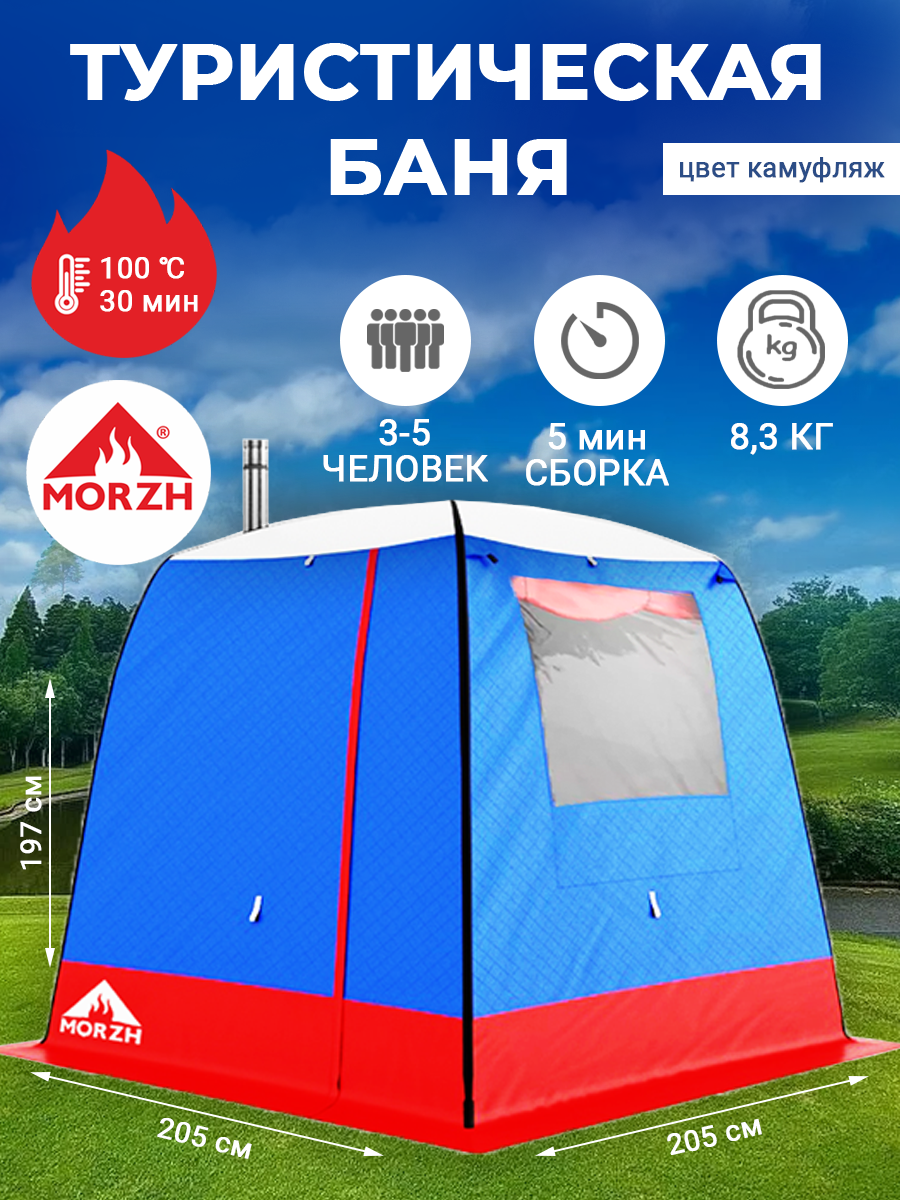 Мобильная баня морж (MORZH) с 1-м окном, сине-красный
