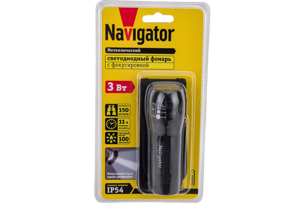 Фонарь ручной Navigator 94 967 Npt-cm03-3aaa алюм. 1LEDх3Вт, фокус, блист.