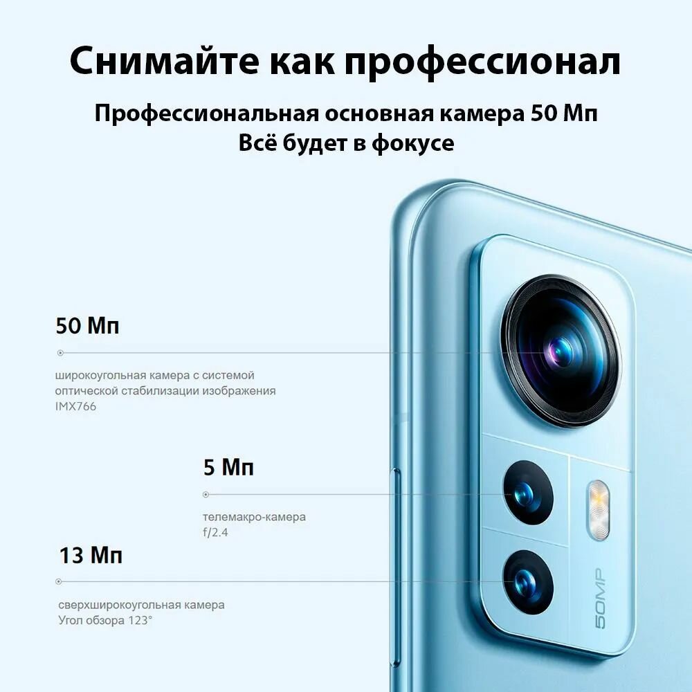 Смартфон Xiaomi 12X L3A Blue/6.28"FHD+(120Hz)/SD870/8GB/128GB/And12/50+13+5/32MP/NFC/5G/4500mAh