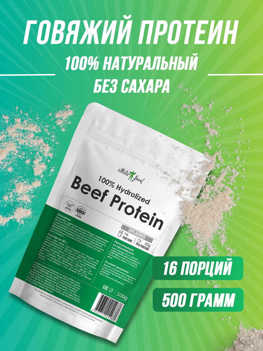 Говяжий протеин Atletic Food 100% Hydrolized Beef Protein - 500 грамм, без вкуса, натуральный интересное: